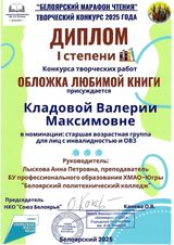 Творческий конкурс «Белоярский марафон чтения», «Обложка любимой книги», в номинации: старшая возрастная группа для лиц с инвалидностью и ОВЗ, заочное