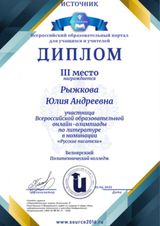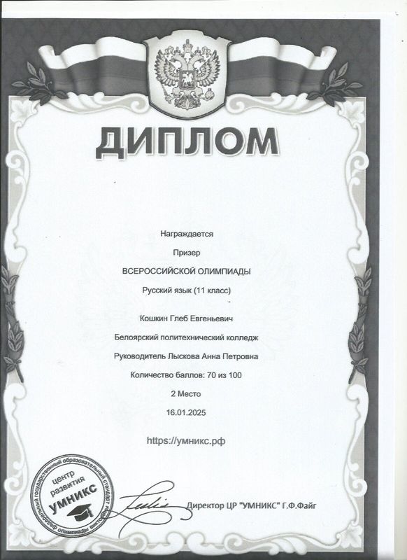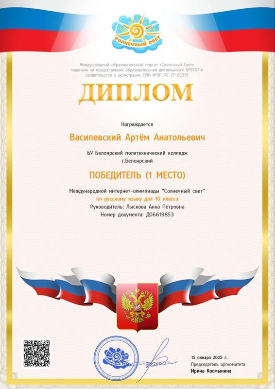 ДИПЛОМЫ И ГРАМОТЫ МЕЖДУНАРОДНОГО И ВСЕРОССИЙСКОГО УРОВНЯ