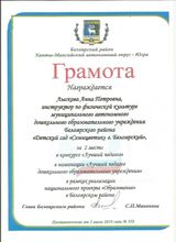 Почетная грамота Комитета по образованию администрации Белоярского района