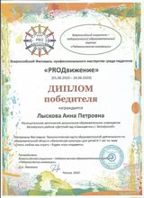 Победитель: Всероссийского Фестиваля профессионального мастерства среди педагогов «PROДвижение»; Всероссийского профессионального фестиваля «Воспитатель года-2019».