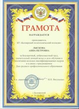 2022, Грамота от БПК за безупречный, добросовестный труд, значительный вклад в дело обучения и воспитания молодых квалифицированных кадров