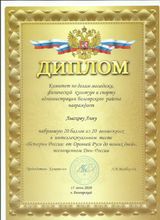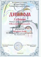 2022, Диплом 3 степени Конкурса детского творчества "Весенний вернисаж" в номинации "Изобразительное искусство"