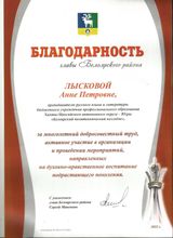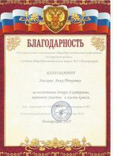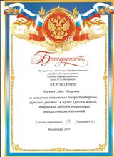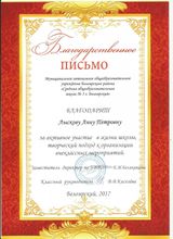 2017, Благодарственное письмо за активное участие в жизни школы, творческий подход к организации внеклассных мероприятий
