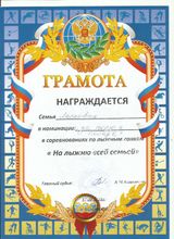 2018, Грамота в соревнованиях по лыжным гонкам "На лыжню всей семьёй"