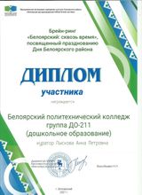 2021, Диплом участника Брейн-ринг "Белоярский: сквозь время", посвященный празднованию Дня Белоярского района