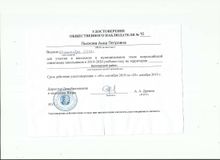 2019, Удостоверение общественного наблюдателя № 10 для участия в школьном и муниципальном этапе Всероссийской олимпиады школьников в 2019-2020 учебном году на территории Белоярский район