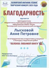 2025 год, Благодарность за сотрудничество и подготовку учащихся к Конкурсу творческих работ