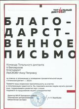 2023 год, Благодарственное письмо за помощь в организации и проведении просветительской акции "Тотальный диктант - 2023"